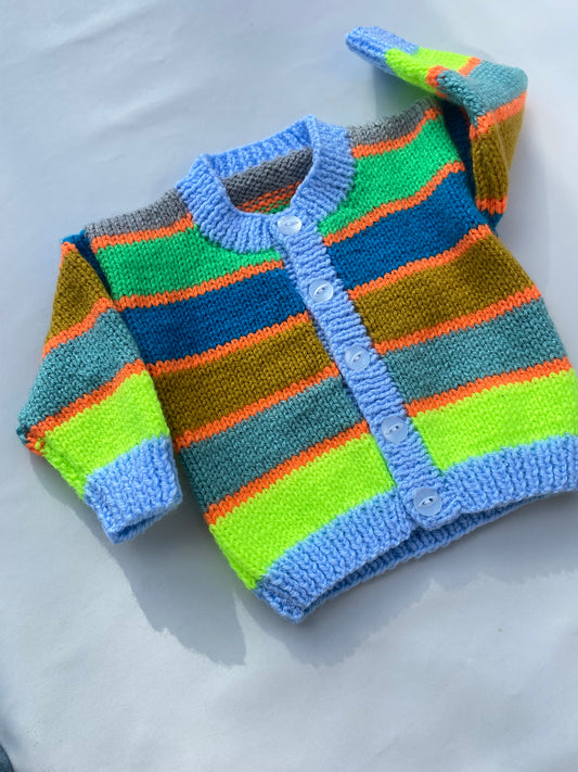 Blue and neon pop striped cardigan (3-6 months)