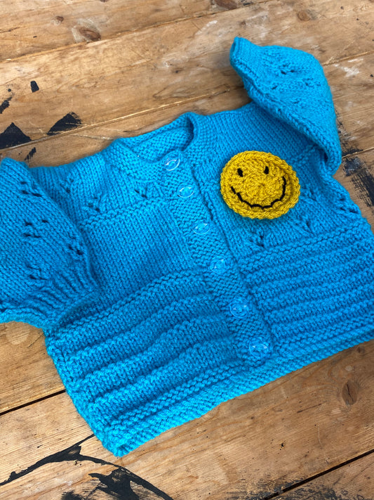 Bright blue patchwork stitch cardigan (3-6 months)