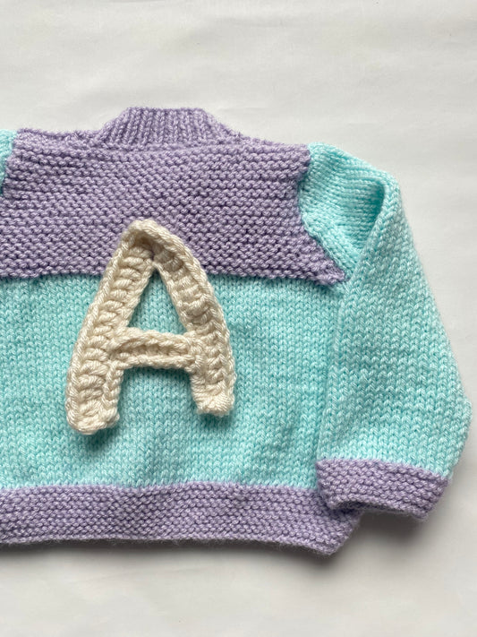 Aqua and soft Lilac colourblock Cardigan (3-6m)