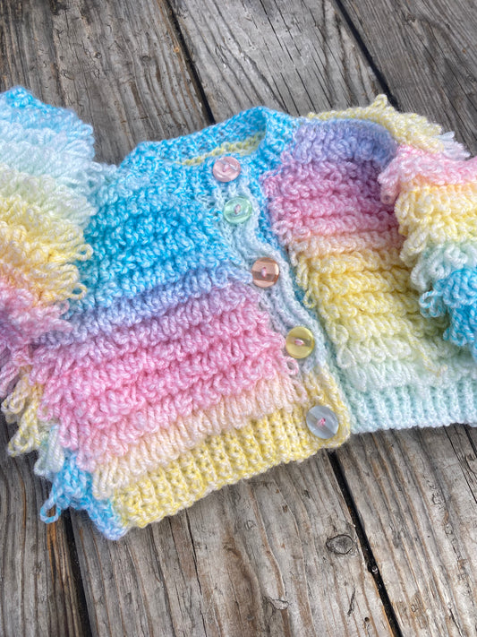 Pastel ombre rainbow loop stitch cardigan (3-6 months)