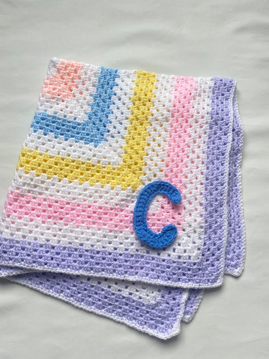 Crochet and Hand-Knitted Blankets, in a range of sizes, ready to be personalised for you with a crochet Monogram Letter.