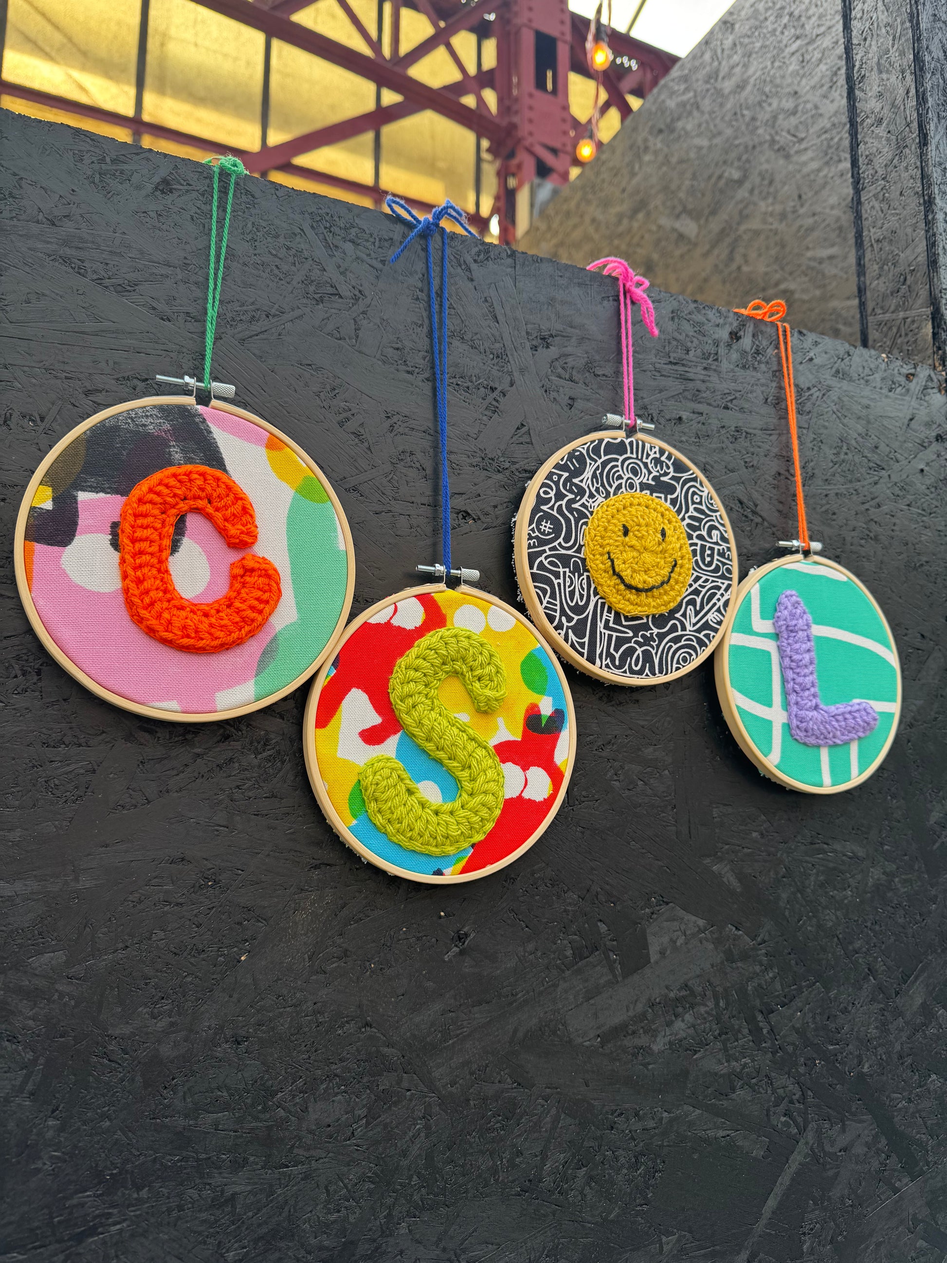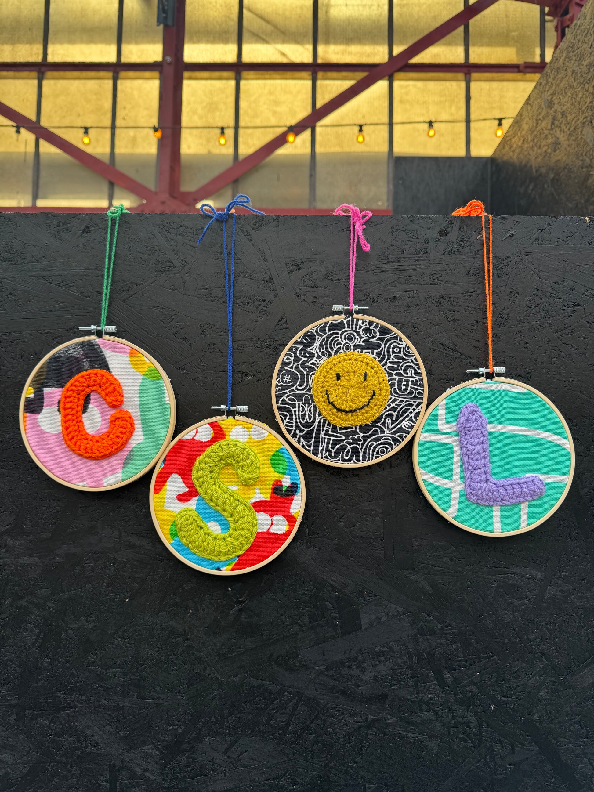 What's included - Choose a banner background and a crochet smiley or monogram initial when you book your ticket, then come down and learn how to blanket stitch it together to take home on the day. Coffee and cake included with your ticket and we will be on hand to help with the stitching or play with babies/kids! Definitely no previous stitching experience required. Dogs and Children very welcome to come along.